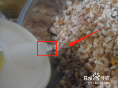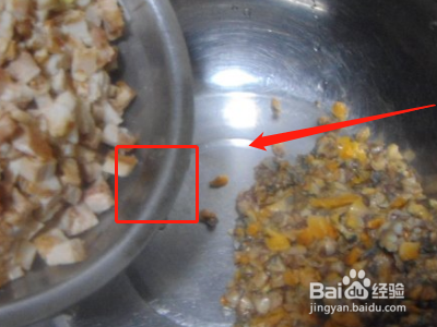 首先我们先把煮熟的肉,剁碎,包馅用,碎一点比较好,接着把葱姜蒜也切碎,备用。