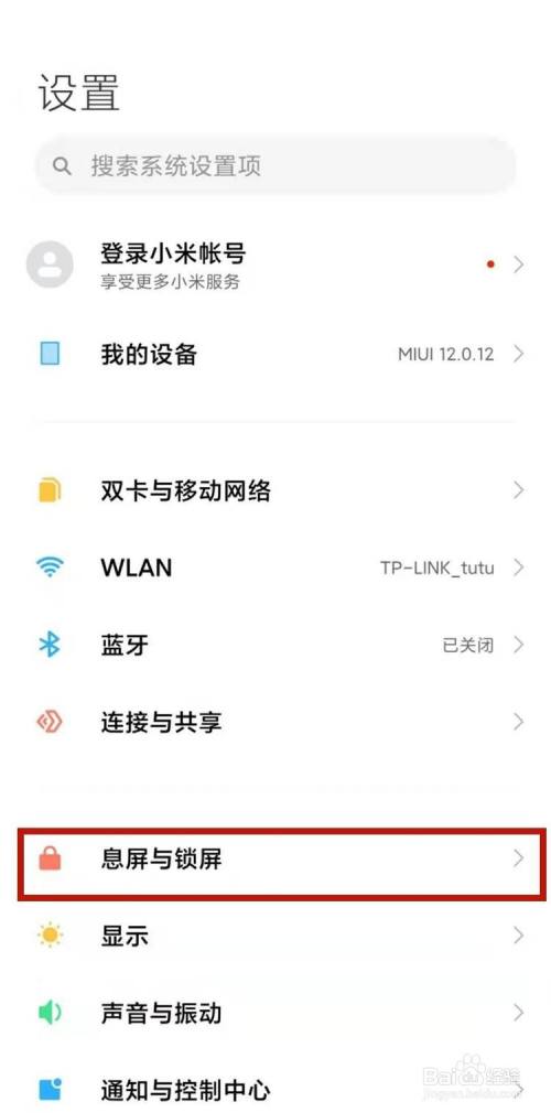1、打开手机【设置】,点击【息屏与锁屏】。