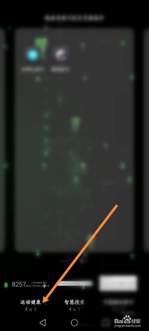 用两手指在屏幕上向内移动,点击窗口小工具,点击运动健康,点击任意空白处。