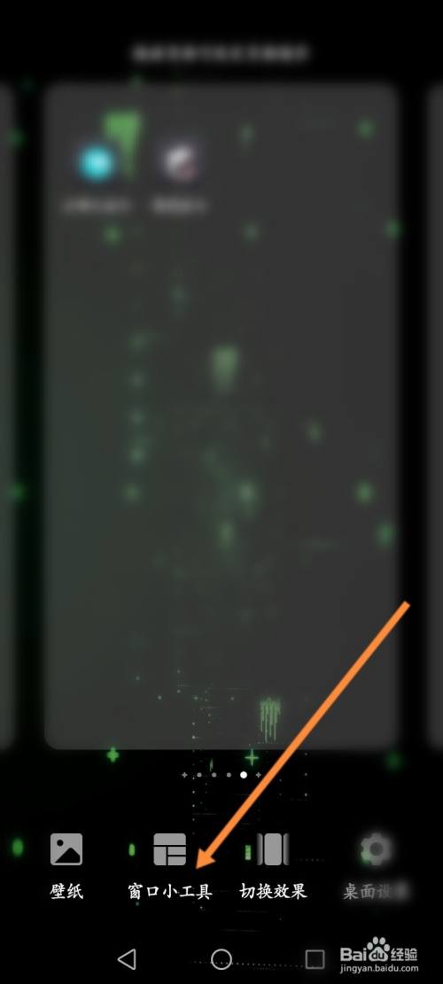 用两手指在屏幕上向内移动,点击下面的窗口小工具。