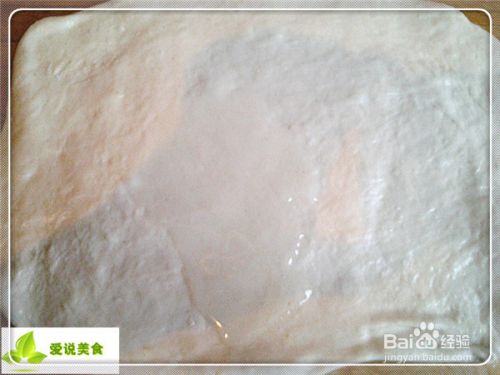 面团醒好的,用擀面杖擀开。涂一层调和油。