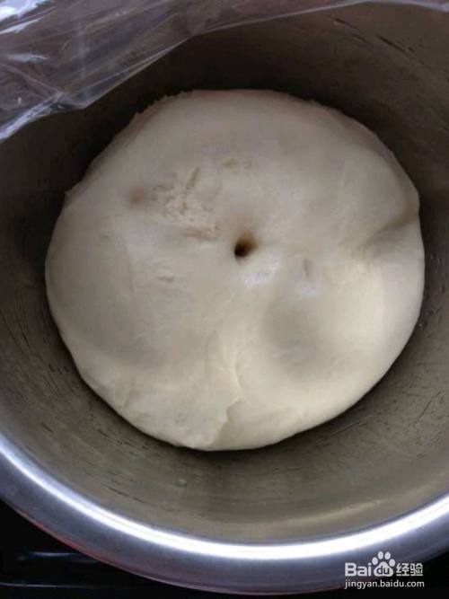 把面团盖上保鲜膜,放在温暖的地方发酵到两倍大。