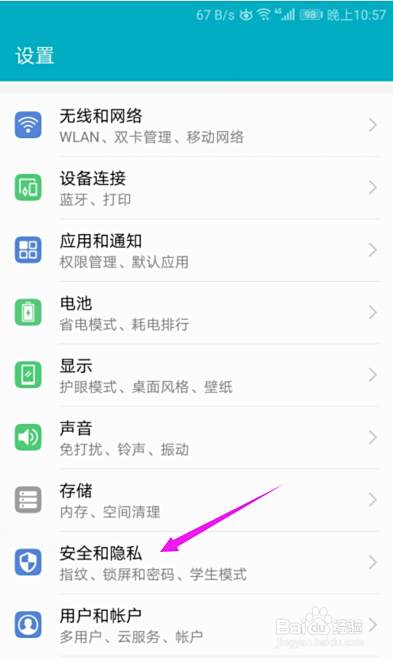 【设置】小画面,简单了,下方点【安全和隐私】,如图。