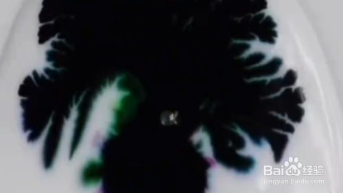 将墨水滴在胶水上,奇迹出现了,墨水像雪花一样慢慢绽放开来。