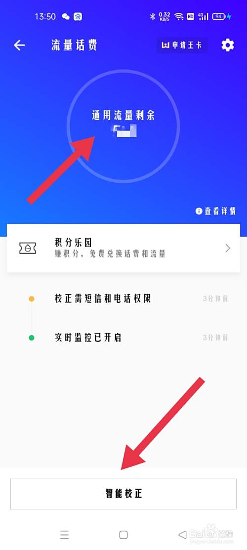 点击腾讯手机管家下面我的,选择流量话费下面的剩余流量,输入月结日期和流量总数,填写号码所在地和运营商,点击智能矫正即可看到。