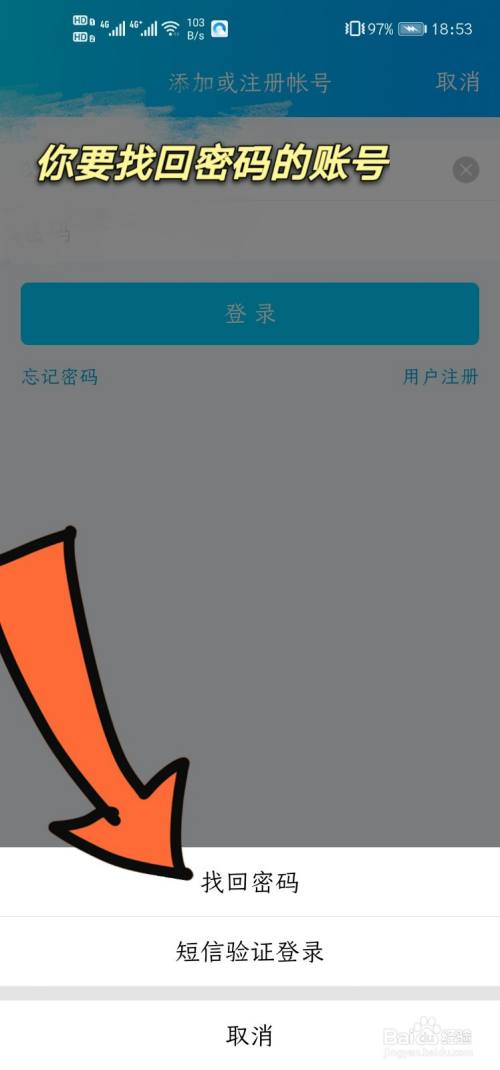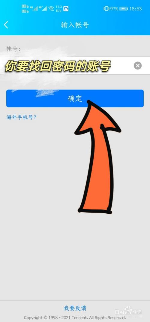 点击“找回密码” 接着再次输入自己要找回密码的账号并点击“确定”