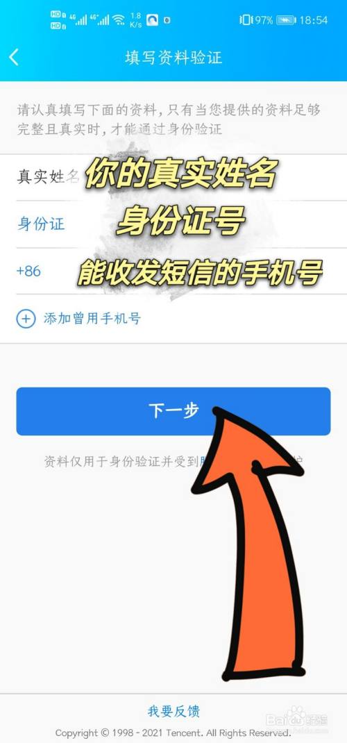 点击“开始验证” 完成信息的填写 点击“下一步”