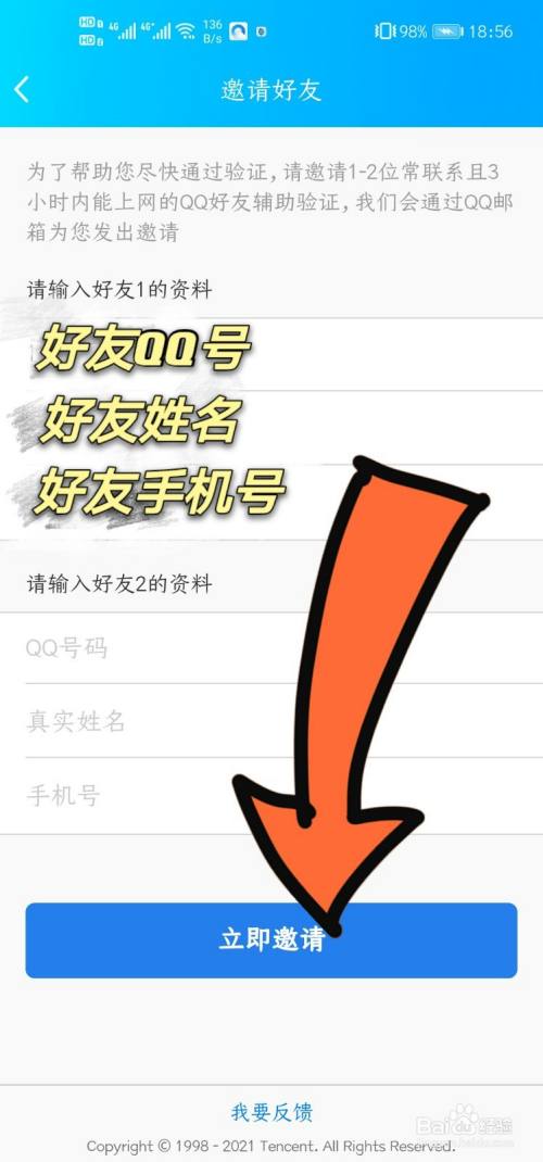 填写一个好友的信息 点击”提交“后会显示资料不足 然后点击”邀请好友辅助验证“