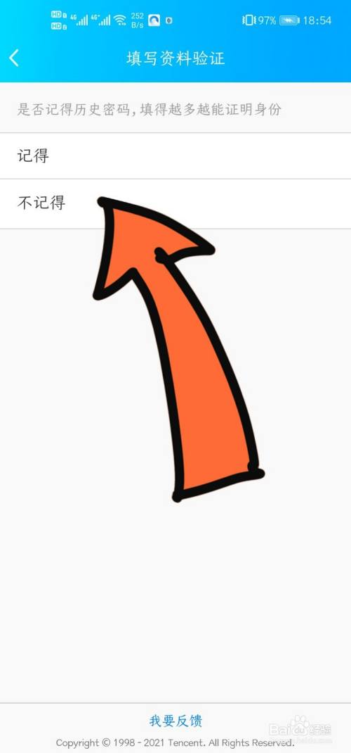 点击"不记得“ 然后滑动图中所示位置 找到自己账号经常在线的手机型号