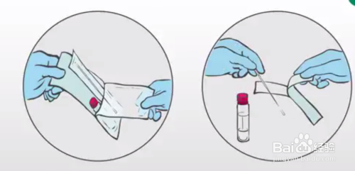 撕开植绒拭子套装包装袋,取出植绒拭子
