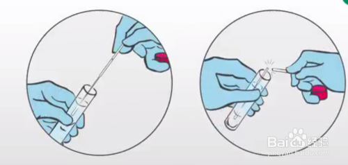 抽出拭子放入有保存液的试管中,多余的拭子杆从折断点折断丢弃