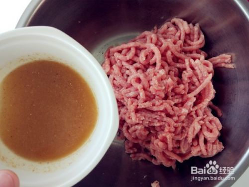 将一部分肉馅(另一部分肉馅我做了烧麦)加香肠调味料拌好腌制一会儿。调料和肉馅的比例,在调料袋上会有标注,不同调味料比例不同,按照标注操作就行。
