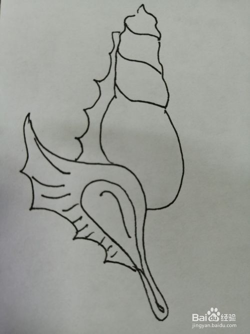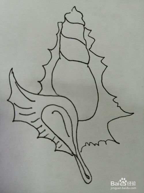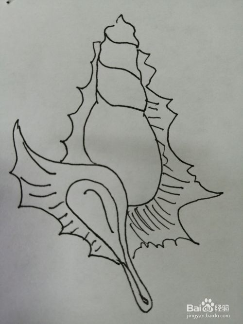 第七步,最后在右边的花纹里面画出细小的纹路。漂亮的海螺就画好了。