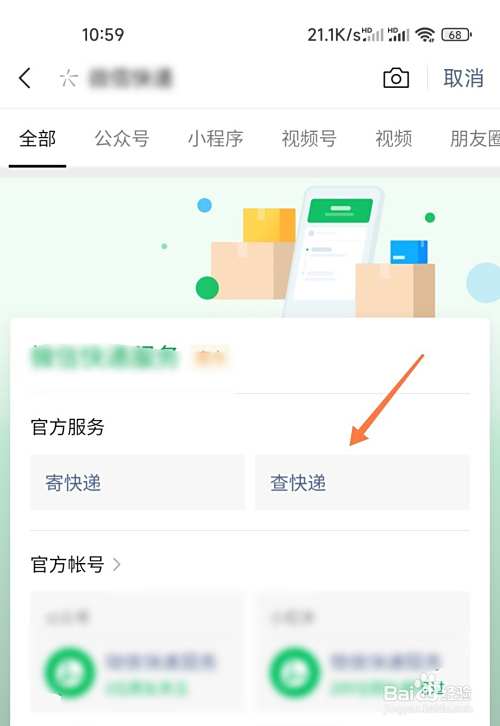 物品的快递物流信息,可以在微信中使用【快递服务】,查询快递情况。以下是查询的具体操作步骤: