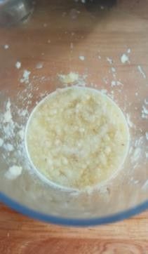 将姜蓉与100g红薯淀粉混合成糊状。经验总结:下次可尝试减少淀粉用量。