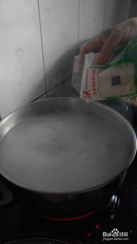 5.锅中放入适量清水加入1斤盐,煮化开。