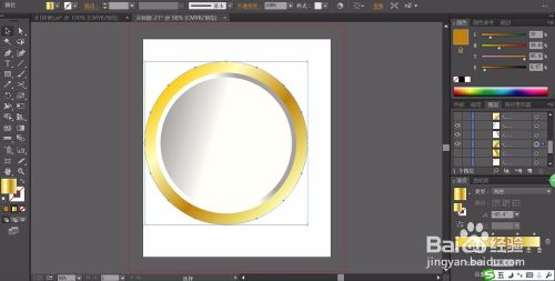 使用圆形工具画出这个指南针的大的边缘圆形,我们用金色的渐变填充。