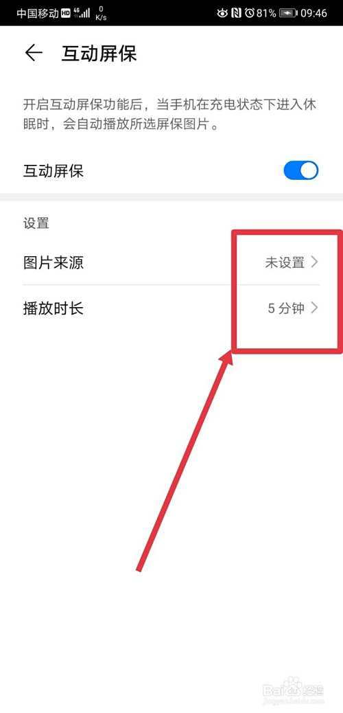 最后在设置屏保的图片来源、播放时长,即可完成设置。