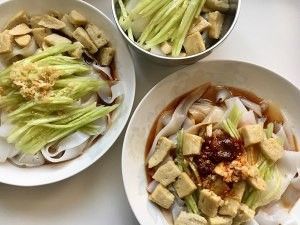 做了四遍,终于作出口感不错、并且调制时不容易断的蒸面皮儿啦^_^