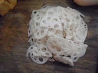 开火,锅内放少量油,待油温7成时放入花椒,大料,干辣椒一枚,变色即刻关火,捡出辅料,只把热油泼入调好的藕片上。