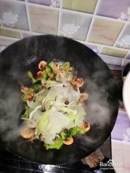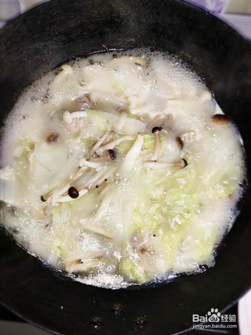 白玉菇煸炒均匀后加入少许醋加入白菜