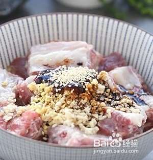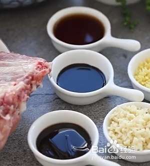 排骨加入生抽老抽蒜姜末腌制30分钟