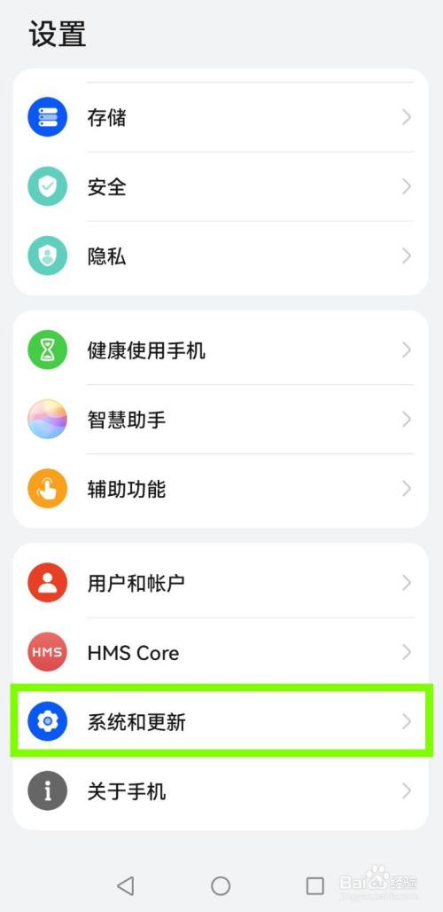 打开华为p50pro手机【设置】菜单——选择【系统和更新】