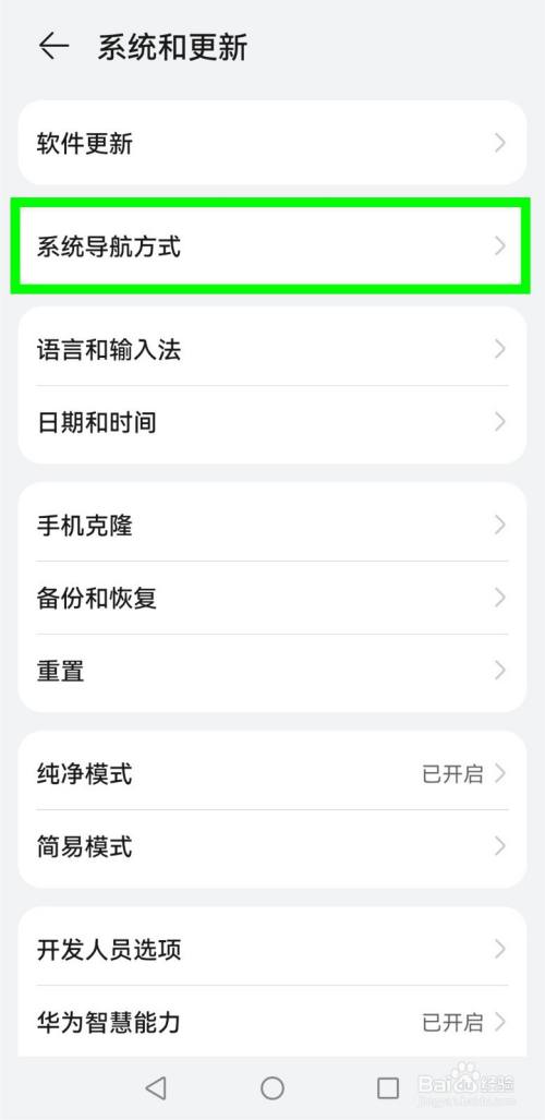 在【系统和更新】页面——选择【系统导航方式】
