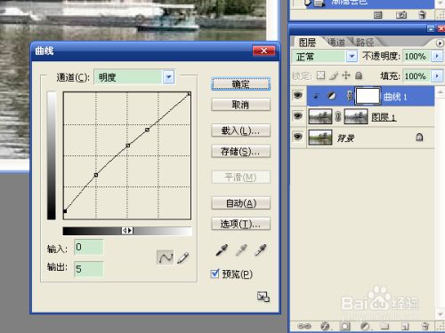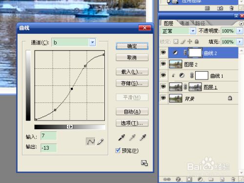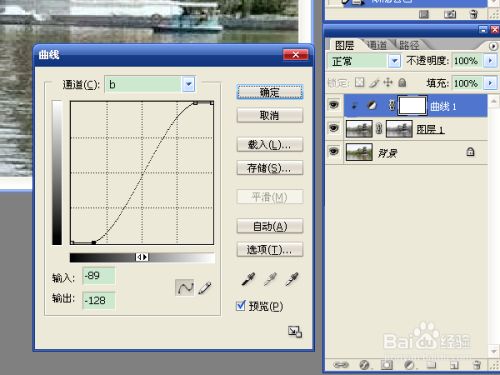 再用曲线调节b通道中的亮度,参数如图,确定。