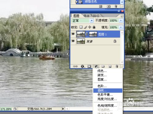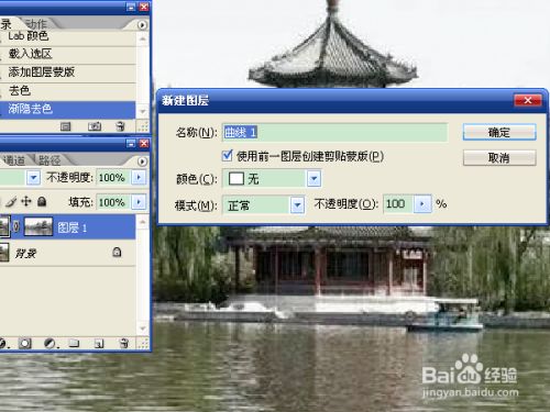 在弹出的窗口中选中“使用前一图层创建剪切蒙版”,确定。这个步骤就是选择“图层”→“新建调整图层”→“曲线”。