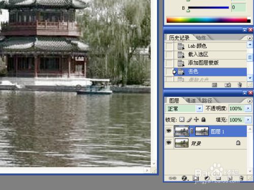打开素材,按ctrl+j复制背景创建图层1。选择“图像”→“模式”→“lab颜色”,在弹出的窗口中选择“不拼合”。