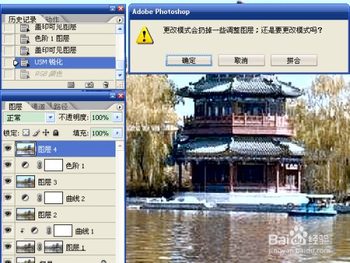 选择“滤镜”→“锐化”→“usm锐化”,选择“图像”→“模式”→“rgb颜色”,选择“拼合”,保存文件。图片处理完成。