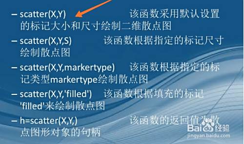 绘制二维散点图需要使用scatter函数,函数的调用格式如下图所示。