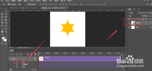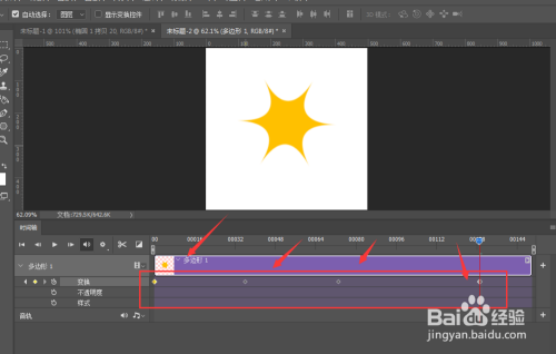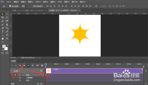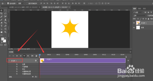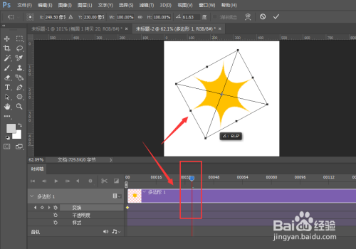 然后将时间轴移动位置,选中形状图层变换旋转方向,如图所示