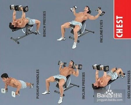 动作一、平板哑铃推胸