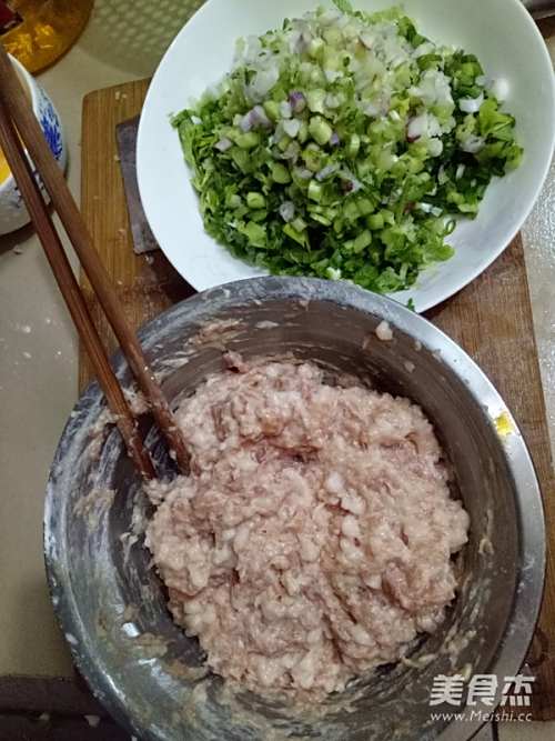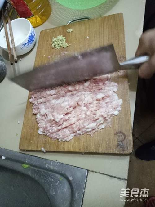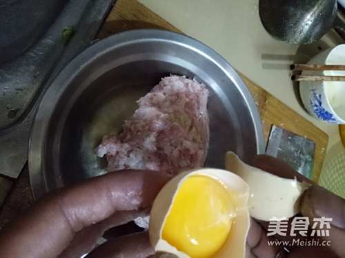 剁好肉末装盘子里,加两个蛋清、盐、生粉、生抽、鸡粉、香油、搅拌均匀