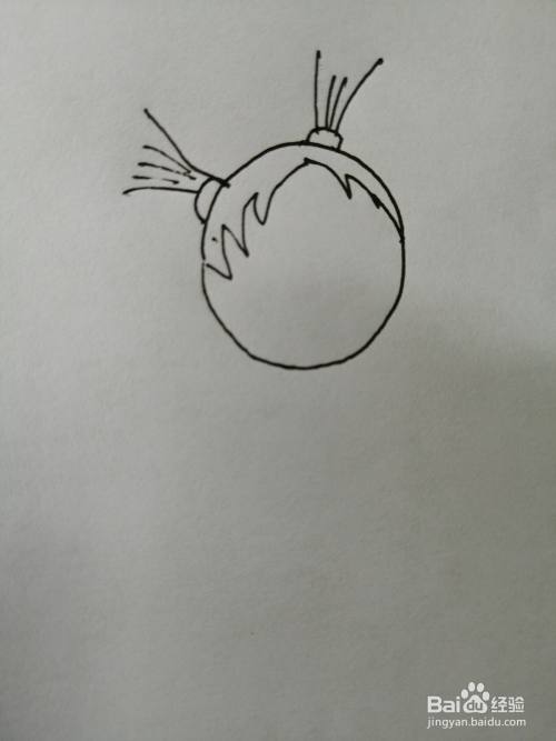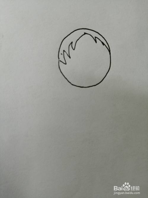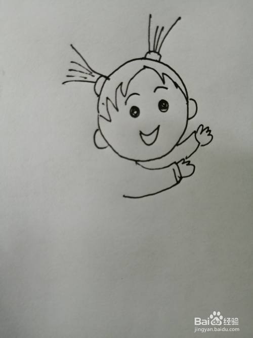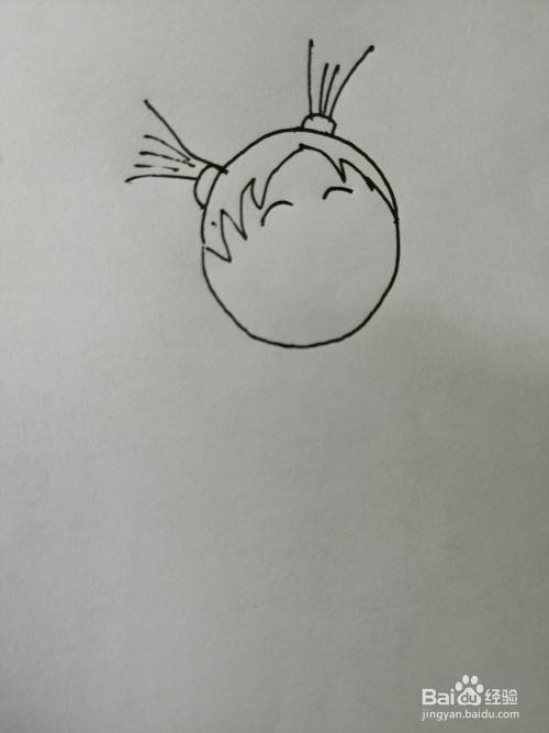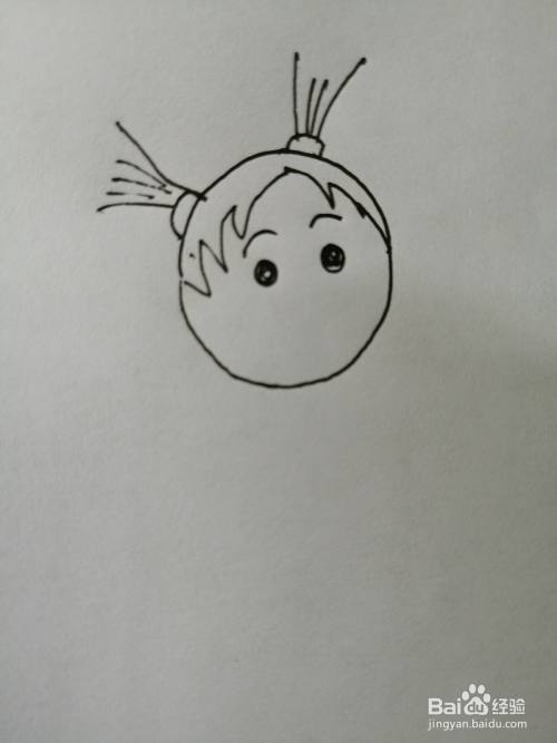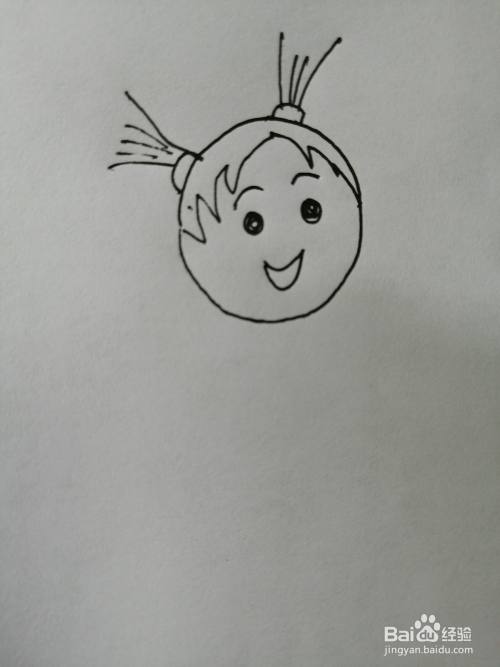 第一步,我们先把可爱的小女孩的头画出来,在小女孩的头顶上画出两个可爱的小辫子。