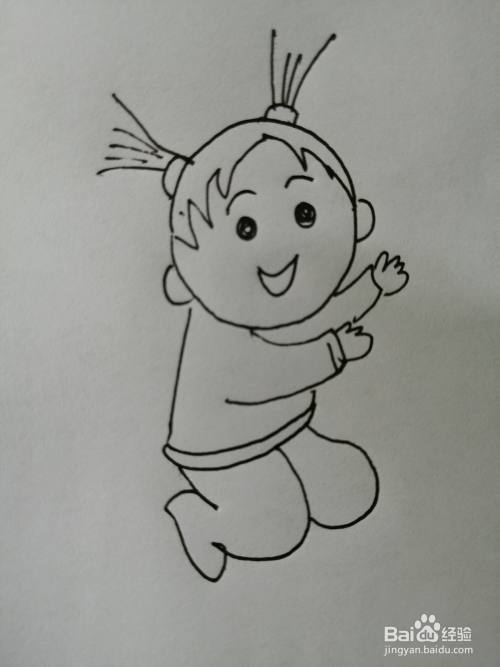 第七步,最后把可爱的小女孩的两条裤腿画出来。可爱的小女孩就画好了。