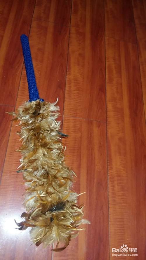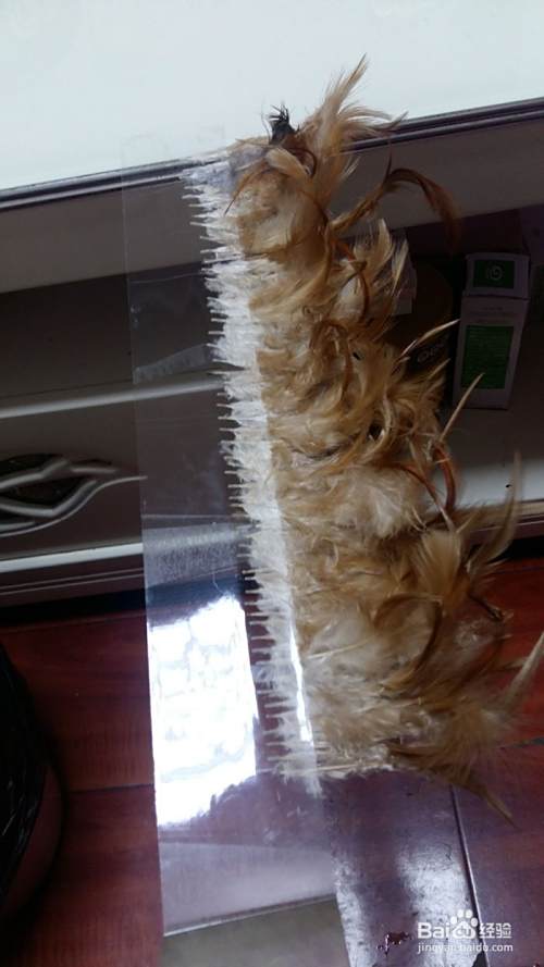 取公鸡脖子部分的毛,公鸡毛越长越好,越美的毛做出来的掸子越好看,小编用的是一公一母两只鸡的毛做的,而且这二只鸡不太好,所以做出来不太好看,显小器