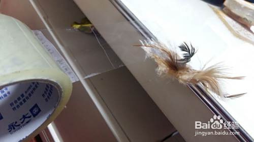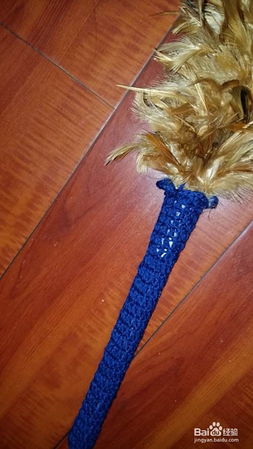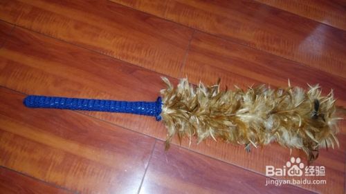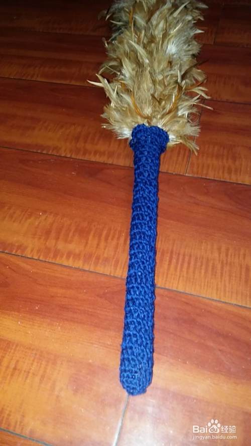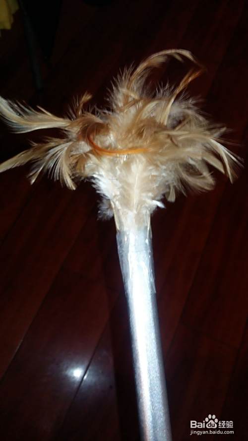 先把手柄前头用软的东西包起来。然后再把粘好鸡毛的封口胶螺旋状一样一圈圈粘在手柄上。再用线绑紧