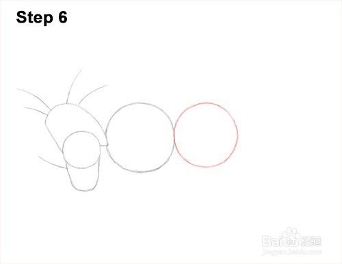 步骤6:在右侧,画出另一个圆圈作为Sty'龙身体后部的向导。用同样的方法画出这个圆圈,使它比身体前部的圆稍小。