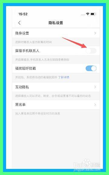 4之后将屏蔽手机联系人的滑动按钮向左滑动关闭即可。  END END
