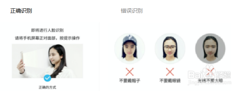 人脸识别期间不要戴帽子、眼镜,并根据画面和语音提示,缓慢的进行动作;另外请确保在光线良好的地方进行识别。如果碰到眨眼这个动作,可以慢慢闭上眼睛,等待片刻再睁开。