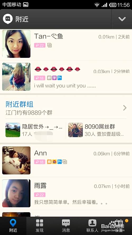 这时会显示附近陌陌用户的个人动态,接着点击右上角的“编辑”按钮