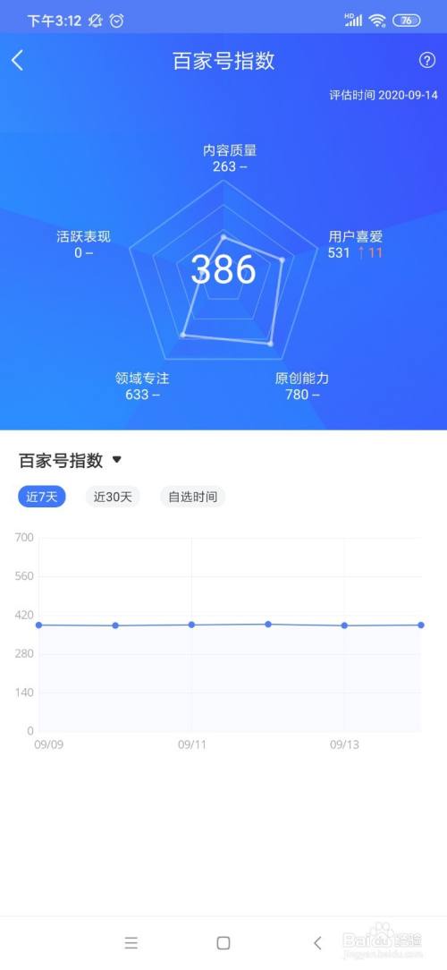 在这里即可查看百家号的指数详情,点击右上角的问号即可查询百家号指数介绍。