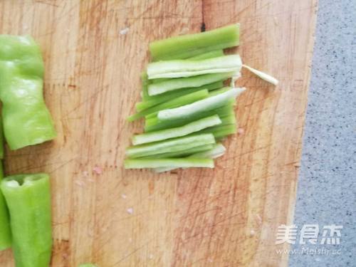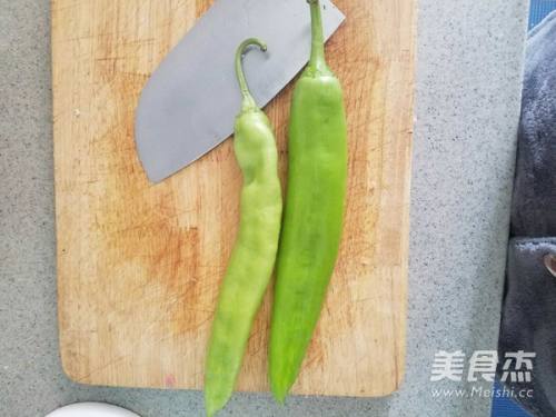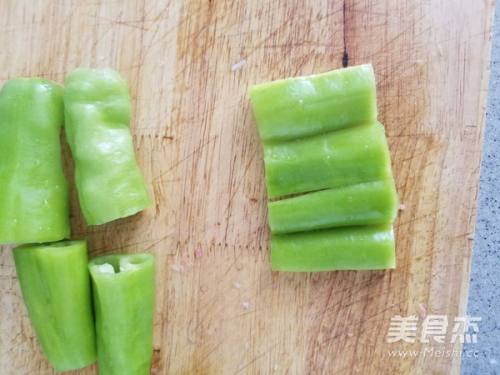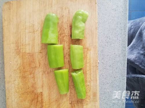 2尖椒去仔,切成三段