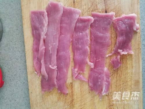 7将里脊从中间剖成薄片,再切丝。这种切法与肉纹路相对,肉丝吃起来不柴,容易嚼烂。