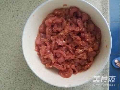 8切好的肉丝放生抽,姜丝,料酒,生粉,鸡精拌好。