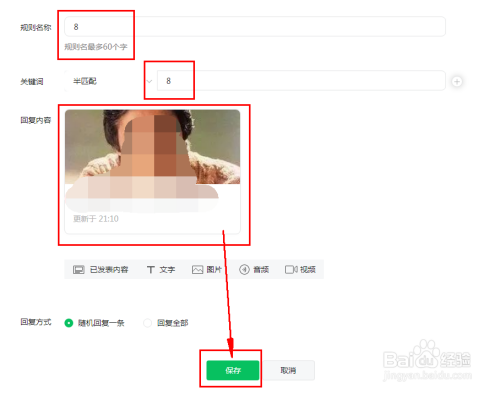 最后一步 自动回复 的 关键词 随便 数字 和 字母 都可以