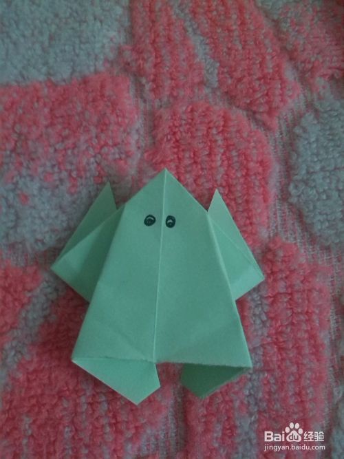 青蛙的四只脚都折好后青蛙的形状就有了。